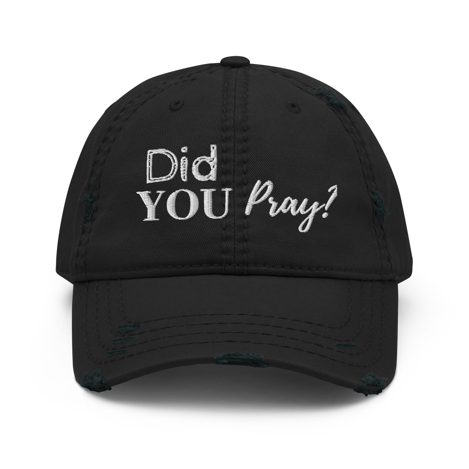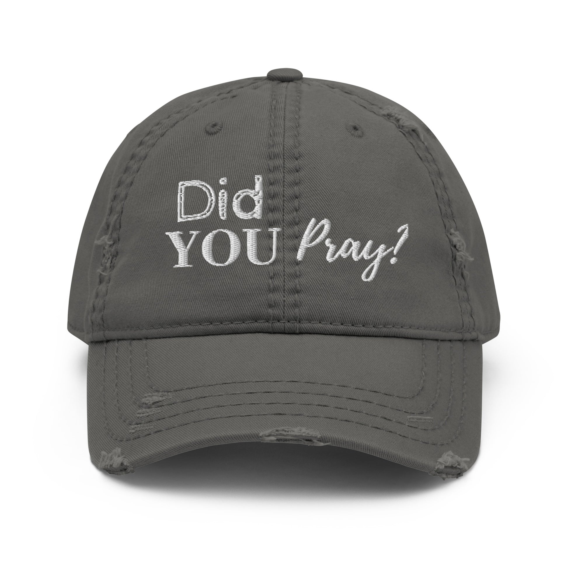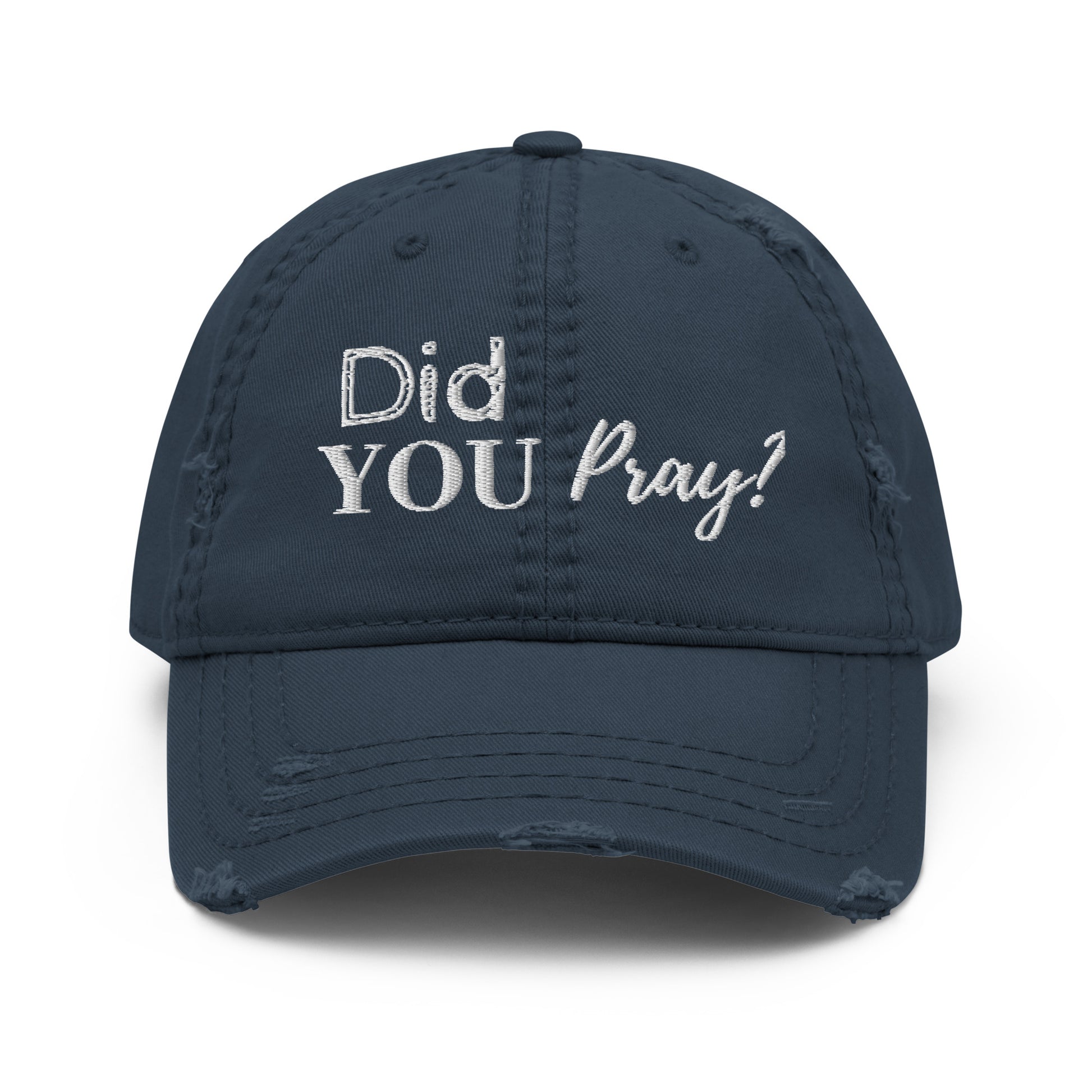 Expand your headwear collection and heart with the "Did You Pray?" distressed dad hat. Make a statement in more ways than one by pairing with the "Did You Pray" hoodie or your favorite "Did You Pray?" tee.